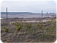 Am nächsten Morgen holt uns Ralf Röhr vom Lacoma e.V. ab. Er hat ein dichtes Programm mit hervorragenden Führern organisiert. Renaturierung und Tagebau stehen auf dem Programm. Mit dabei sind Herr Dr. Martin Gast, Leiter der Abteilung Gewässersanierung und Naturschutz im Forschungsinstitut für Bergbaufolgelandschaften e.V. und Herr Stefan Röhrscheid vom NABU, Leiter des Projektes „Naturparadies Grünhaus“ bei Finsterwalde. Der NABU hat das Gebiet im ehemaligen Tagebau Lauchhammer gekauft, damit die Natur eigenständig wieder wurzeln fassen darf. Renaturierung statt Rekultivierung ist im „Grünhaus“ das Motto. Das bedeutet, dass hier nicht nachträglich Bodenschichten aufgelegt werden oder Kulturpflanzen gezielt ausgesät werden. Hier darf die Natur wachsen, wie sie möchte, und das Gebiet langsam wieder zurück erobern. Natürlich werden die Prozesse beobachtet und wir können dank diesem NABU-Projekt viel lernen, was wir mit unseren Kippen und Kohlegruben in Zukunft machen können.